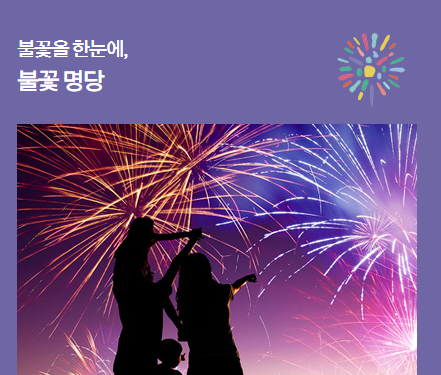추가로 여의도 한강공원도 추천하는데, 불꽃놀이 끝난 이후 한강공원 내 노천극정에서 DJ들의 공연과 미디어쇼를 즐길 수 있기 때문입니다. 이외에도 이촌한강공원, N서울타워전망대, 마포대교 등도 추천합니다.