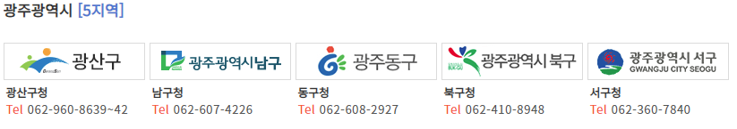 - 광주광역시 (광산구, 남구, 동구, 북구, 서구)