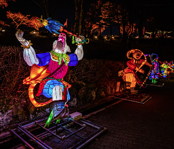 올해 진주 유등축제는 부교가 하나 더 추가되었고 문화예술회관에서 진주교로 오는 방향에 유등이 추가되었습니다. 공룡존, 평화존, 동화 속 세계존 등 여러가지 존이 있으니 각각 즐기시면 되겠습니다. 천수교 아래 음악분수대 광장에는 캐릭터를 제작해 설치되니 아이들이 좋아할 것 같네요. 남강 반대편으로 가시려면 부교를 건너야 합니다. 행사장 입장료는 무료이지만, 부교 통행시는 부교 통행권이 있어야하는데요. 아래 링크에서 구매하시면 번거롭게 줄서지 않고 바로 통행할 수 있습니다.